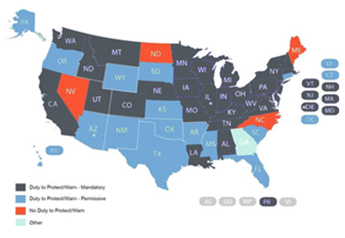 Example: Wisconsin.51.17, States Warning of dangerousness. “(a) Any healthcare provider that reasonably believes and individual has a substantial probability of harm to himself or herself or to another person…”